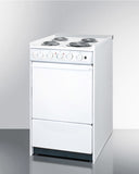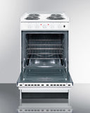 The WEM110R is an apartment-sized 220V electric range sized at just 20" wide, with a generous 2.46 cu.ft oven interior that can accommodate large trays. Two adjustable oven racks are included. The waist-high broiler is located inside the oven, allowing you to switch functions without moving contents to a separate compartment on the floor. The lower drop-down storage compartment is ideal for keeping pots and pans out of the way in small kitchens.