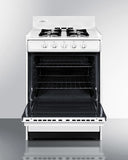 The WNM6107 is an apartment-sized gas range sized at just 24" wide, with a generous 2.92 cu.ft oven interior that can accommodate large trays. Two adjustable oven racks are included. The broiler is located below the oven in a drop-down compartment. Four open 9000 BTU gas burners accommodate most of your stovetop heating needs, with upfront push-to-turn knobs that let you adjust your cooking without reaching over hot burners. This unit utilizes an electronic ignition system for added safety.
