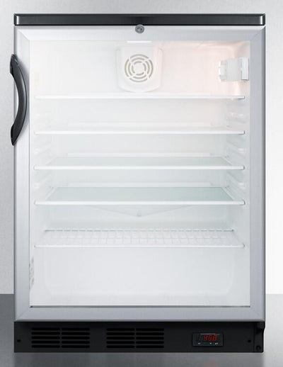 The SCR600BGLBIDTPUBADA is ETL-S listed to NSF-7 commercial standards. The front-breathing design allows built-in installation under counters, while the fully finished black cabinet also allows freestanding use for added flexibility. This unit includes a user-reversible double pane tempered glass door with a brushed aluminum frame. The factory installed lock offers added security and is located towards the top of the door to ensure easier access. This unit is sized to fit under lower ADA compliant counters.
