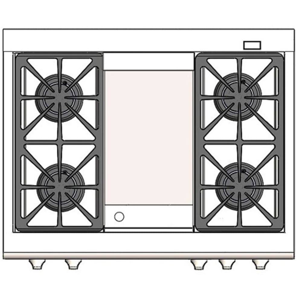 Capital Cooking - 36" Capital Connoisseurian Dual Fuel Range - Self Clean - 19K BTU - 4 Sealed Burners w/ 12" Griddle (centered) - CSB362G2
