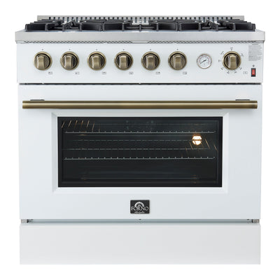 FORNO - Espresso Marco 36" 5.36 cu.ft. Gas Range with 6 Burners and Temperature Gauge in Black with Antique Brass Accents, FFSGS6277-36WHT |
