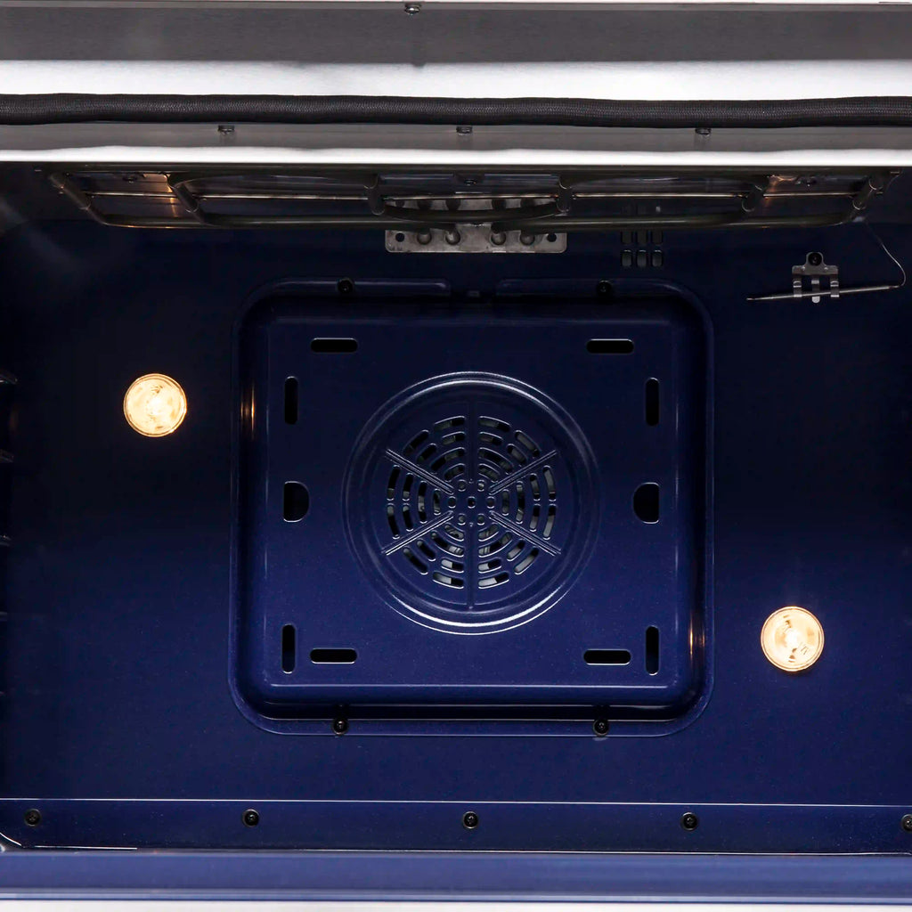 With features like a reversible grill/griddle, air fryer basket, and speckled blue enamel interiors, this premium range blends function with style available exclusively on Appliance Guys. Telescopic racks, 3-layer glass doors, and LP conversion kit complete this high-performance package.