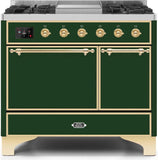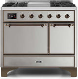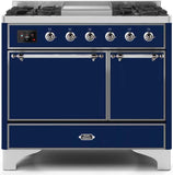ILVE - 40" Magestic II Series Freestanding Dual Fuel Range - Double Oven - Griddle, Solid Door(s) - Warming Drawer - Liquid Propane
