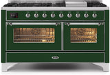 ILVE - 60" Magestic II Series Freestanding Dual Fuel Range - Griddle, Glass Door(s) - Warming Drawer - Liquid Propane