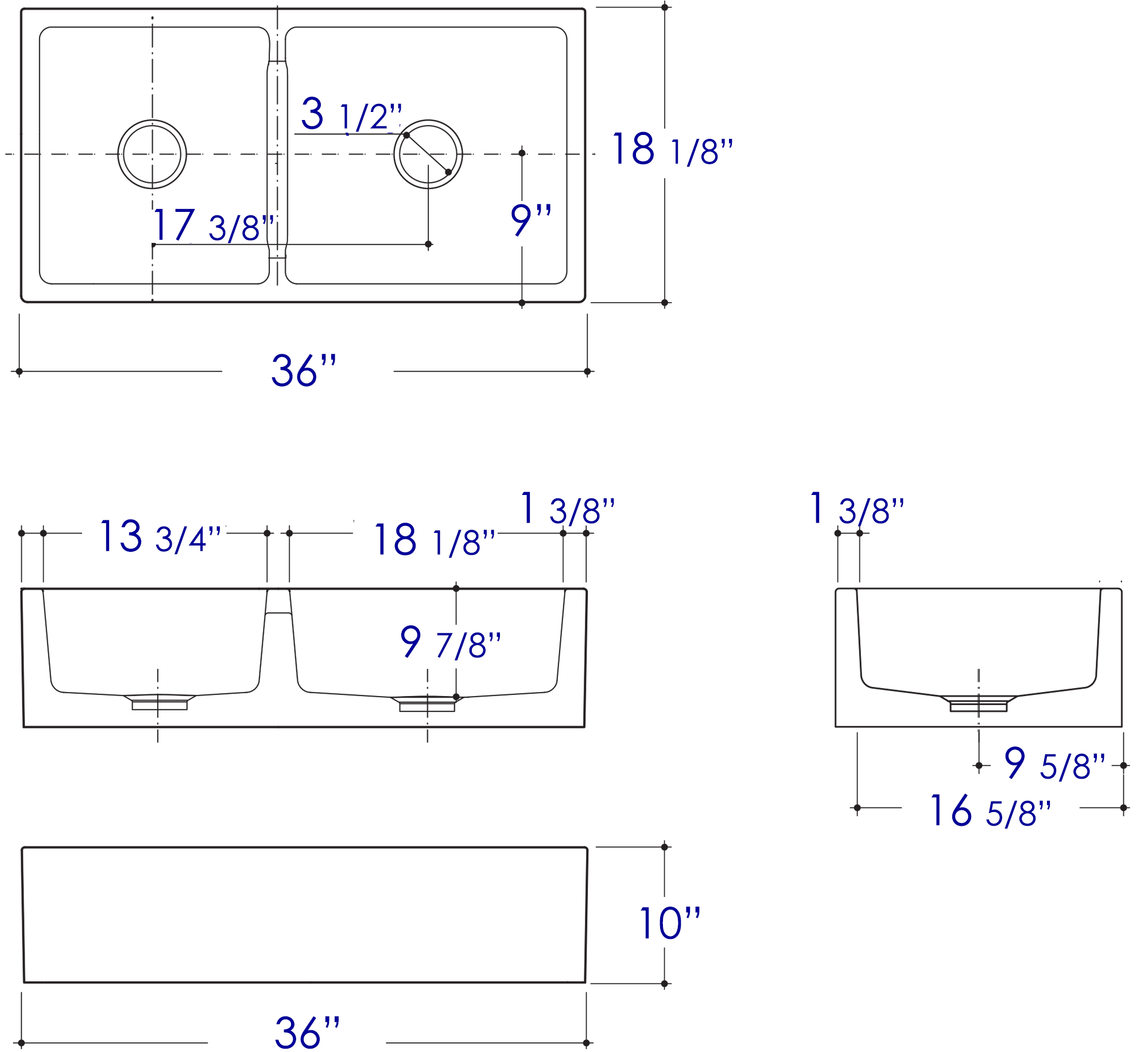 - Due to the organic nature of the fireclay, material dimensions may vary by 1/8" of an inch. We recommend having the sink on location to trace and measure for countertop and cabinet cut outs.