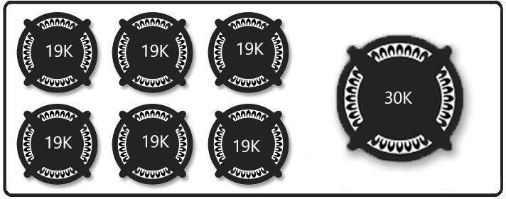 - Cooktop Configuration: 19,000 BTU Power-Flo™ Sealed burners turn down to a true simmer, 800 - 30,000 BTU Power-Wok™ burner.