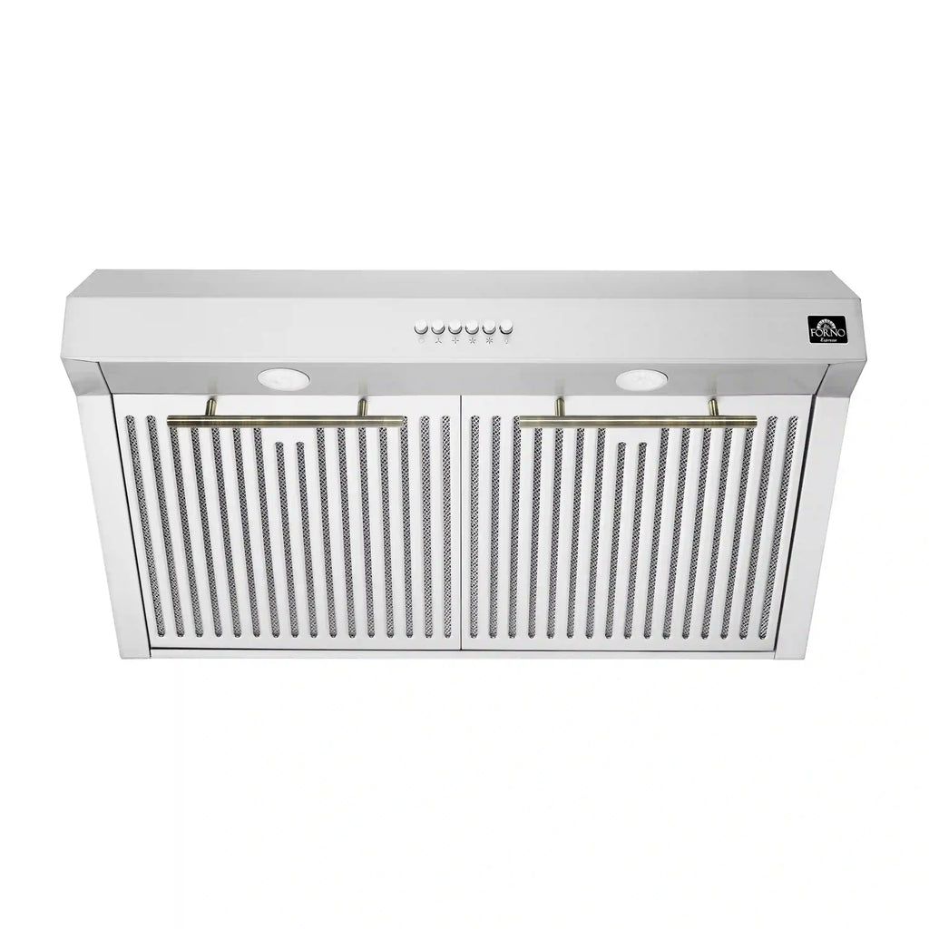 Forno - 30" Bari Espresso 400 CFM Under Cabinet Range Hood in Stainless Steel with Brass Handle